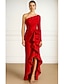 عامودي فساتين متنوعه أنيق الزي الرسمي رسمي زفاف متوازي كم طويل كتف واحد طبقات ساتان مع كشاكش 2025