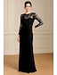 فستان سهرة حورية البحر مزخرف بالخيوط الأسود فستان أنيق زفاف الخريف رسمي بطول الأرضية بأكمام طويلة بياقة مربعة مع شق لمعة فستان تنكرية