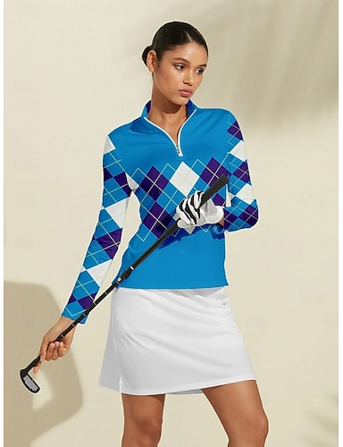 نسائي قميص بولو أزرق بحيري أبيض زهري كم طويل حماية الشمس قمم زخرفات الخريف الشتاء ملابس الجولف للسيدات، ملابس ملابس