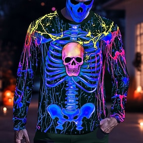 Halloween رجالي شبح الموت هيكل عظمي تي شيرت كم طويل تي شيرت طباعة ثلاثية الأبعاد رقبة عالية مدورة قميص موضة مبالغ فيه شارع فضفاض مناسب للبس اليومي أسود أصفر أزرق الصيف الربيع الخريف ملابس S M L XL