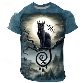 Halloween رجالي قطة تي شيرت كم قصير تي شيرت طباعة ثلاثية الأبعاد رقبة عالية مدورة قميص مبالغ فيه مصمم فني شارع فضفاض مناسب للبس اليومي أسود أزرق أرجواني الصيف الربيع كل الفصول ملابس S M L XL XXL XXXL