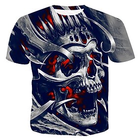 رجالي الرسم جماجم 3D تي شيرت قميص هالوين كم قصير تي شيرت طباعة ثلاثية الأبعاد رقبة دائرية قميص فضفاض مناسب للبس اليومي أسود أزرق رمادي فاتح الصيف ملابس قياس كبير S M L XL 2XL 3XL M