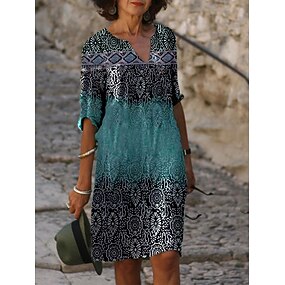 نسائي فستان قصير لباس غير رسمي فستان شيفت لباس صيفي موضة الحديث مناسب للبس اليومي شاطئ عطلة نهاية الاسبوع عادي ورد 3/4 الكم V رقبة أكوا الأزرق أزرق البحرية أزرق أخضر الصيف