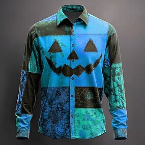 Halloween رجالي ألوان متناوبة قرع بقع قميص زر حتى القميص كم طويل الطراز القوطي الداكن مناسب للعطلات ملابس الشارع الصيف الربيع طوي طباعة ثلاثية الأبعاد قميص بياقة أصفر أزرق برتقالي أخضر