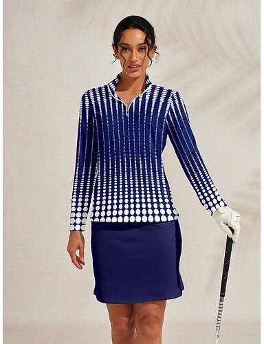 نسائي قميص بولو أسود زهري أزرق كم طويل حماية الشمس قمم منقط الخريف الشتاء ملابس الجولف للسيدات، ملابس ملابس