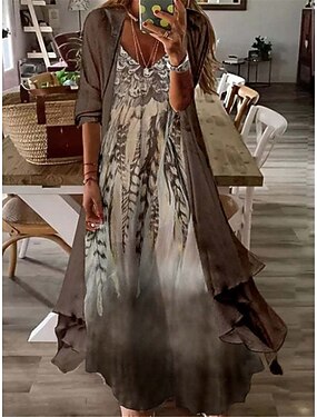 نسائي فستان طويل ماكسي لباس غير رسمي مجموعة اللباس فستان قطعتين فستان شيفت موضة الأماكن المفتوحة مناسب للبس اليومي مناسب للخارج فضفاض صالح ظل ترايبال زهور كم طويل V رقبة وردي بلاشيهغ بني أخضر مشمشي