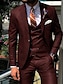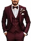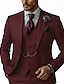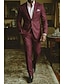 ملك الرجال توكسيدو بدلة زفاف الشاطئ حفل زفاف ربيعي عنابي عنابي للربيع والصيف بدلة شق الصدر علوي موضة رسمي لون سادة قياس أساسي ستاندرد 3 قطعة مجموعة زر واحد صدر واحد