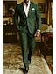 ملك الرجال بدلة زفاف عنابي أخضر داكن الربيع، الخريف، الشتاء، الصيف بدلة ذروة الأعمال التجارية ملابس عمل لون سادة قالب مثالي 2 قطعة مجموعة صدر ثنائي ست أزرار