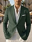 رجالي جاكيت بليزر بليزر كتان طوق الشق موضة كاجوال لون سادة أزرق كاكي غامق أسود قالب مثالي زر واحد برستد