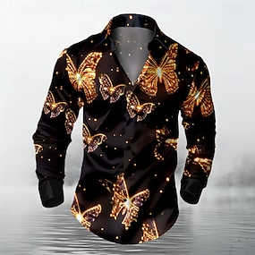رجالي فراشة قميص الساتان قميص رسمي زر حتى القميص كم طويل عارضة الازياء عطلة ملابس الحفلات والسهرات مناسب للبس اليومي الصيف الربيع الخريف قميص بياقة طباعة ثلاثية الأبعاد أسود