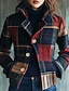 نسائي سترة الدفء مريح جيب Buttons كاجوال منقوش عطلة مناسب للخارج عطلة نهاية الاسبوع عادية مرتفعة عادي كم طويل ملابس خارجية أحمر الخريف الشتاء