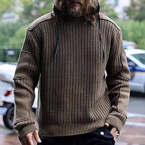 رجالي سترة سترة من صوف محبوك سترة الرمز البريدي مضلع متماسكة قمصان عادية محبوك لون الصلبة رقبة طوقية مرتفعة العطلة موضة فضفاض مناسب للبس اليومي ملابس ربيع & الصيف أسود كاكي S M L