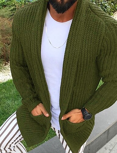 رجالي سترة سترة من صوف محبوك مضلع متماسكة قمصان عادية محبوك لون الصلبة ياقة شال العطلة موضة فضفاض مناسب للبس اليومي ملابس ربيع & الصيف أسود أخضر عسكري M L XL