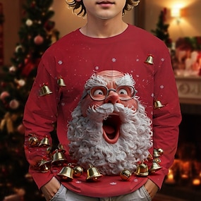 عيد الميلاد المجيد للصبيان 3D بابا نويل تي شيرت كنزة مطبوعة كم طويل الربيع الخريف موضة أساسي أطفال 4-12 سنة رقبة العمل الأماكن المفتوحة فضفاض مناسب للبس اليومي عادي
