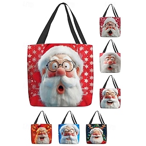 حقيبة تسوق عيد الميلاد النسائية - تصميم سانتا كلوز مع شجرة عيد الميلاد الاحتفالية ورقاقات الثلج، ممتعة وخيالية، هدية مثالية لحفلات عيد الميلاد واحتفالات الشتاء والتسوق