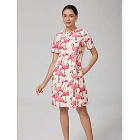 فستان قصير مطاطي بطبعة طائر الفلامنجو