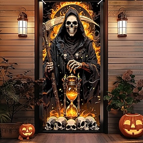 غطاء باب نسيج هالوين لافتات خارجية حاصد أرواح ثلاثية الأبعاد على طراز البانك القوطي الداكن للحفلات وغرف النوم وغرف المراهقين وغرف النوم الجامعية وكهف الرجال وغرف نوم الأخويات وخلفيات التصوير وديكور