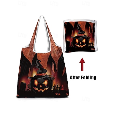 حقيبة تسوق نسائية على شكل قرع الهالوين - حقيبة كتف قابلة للطي وإعادة الاستخدام بنمط اليقطين للاستخدام غير الرسمي والحفلات والاستخدام اليومي
