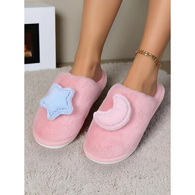 نعال منزلية نسائية بيضاء من القطيفة مع زخارف النجوم والقمر، بطانة صوفية ناعمة ودافئة، أحذية منزلية لطيفة ومريحة لغرفة النوم في الشتاء &ملابس منزلية