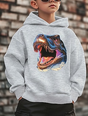 للصبيان 3D الرسم حيوان ديناصور هوديي كم طويل طباعة ثلاثية الأبعاد الصيف الربيع الخريف الرياضات موضة أناقة الشارع أطفال 3-12 سنة الأماكن المفتوحة فضفاض مناسب للبس اليومي عادي