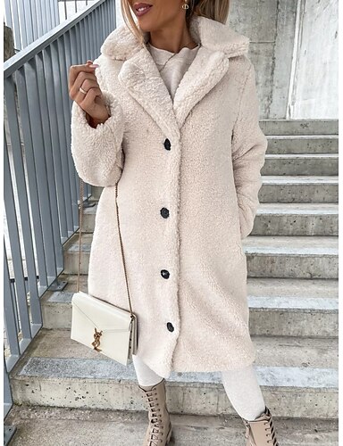 نسائي معطف تيدي مريح متنفس Buttons كاجوال سهل عطلة شارع فضفاض مناسب للبس اليومي صدر فردي طويلة طوي عادي كم طويل ملابس خارجية بني كاكي مشمشي الربيع الخريف