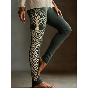 نسائي الفايكينج طماق بنطال ضيق مريح العطلة عتيق النمط العرقي مكتمل الطول خصر عالي الرسم شجرة طبع مريح عالية المرونة فضفاض مناسب للبس اليومي عطلة أخضر الربيع الخريف قياس نحيل