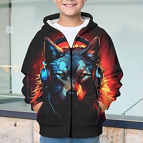 مهرجان للصبيان 3D ذئب هوديي معطف ملابس الخارح كم طويل الخريف الشتاء نشيط أناقة الشارع كوول بوليستر أطفال 3-12 سنة السحاب شارع مناسب للبس اليومي عادي