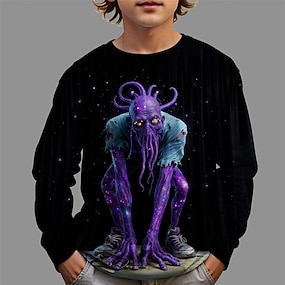 عيد الرعب للصبيان 3D الرسم كارتون تي شيرت كنزة مطبوعة كم طويل الربيع الخريف موضة أساسي أطفال 4-12 سنة رقبة العمل الأماكن المفتوحة فضفاض مناسب للبس اليومي عادي