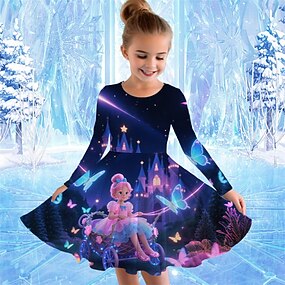 الفتيات 3D رجل ثلج ندفة ثلجية فستان كم طويل طباعة ثلاثية الأبعاد الخريف الشتاء الرياضة & في الخارج مناسب للبس اليومي مناسب للعطلات لطيف كاجوال جميل أطفال 3-12 سنة لباس غير رسمي فستان شكل حرف A
