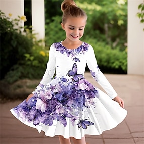 الفتيات 3D فراشة فستان كم طويل طباعة ثلاثية الأبعاد الربيع الخريف عطلة الرياضة & في الخارج مناسب للبس اليومي لطيف كاجوال جميل أطفال 3-12 سنة لباس غير رسمي فستان شكل حرف A فوق الركبة عادي