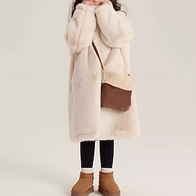أطفال للفتيات معطف فرو صناعي لون الصلبة أناقة الشارع جيب Buttons رسمي معطف ملابس خارجية 4 سنوات + الشتاء البيج