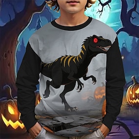 عيد الرعب للصبيان 3D قرع ديناصور تي شيرت كنزة مطبوعة كم طويل الربيع الخريف موضة أساسي أطفال 4-12 سنة رقبة العمل الأماكن المفتوحة فضفاض مناسب للبس اليومي عادي
