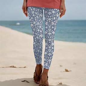 نسائي سراويل طماق أناقة الشارع كاجوال مكتمل الطول خصر عالي ورد مرونة الخصر طباعة التنفس إمكانية مريح قابل للبسط عطلة شارع مناسب للبس اليومي أزرق الصيف الربيع الخريف عادي