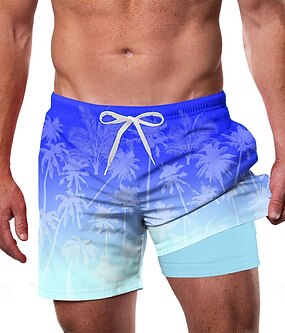 رجالي شجرة جوز الهند محيط استوائي شورت مبطن شورت سباحة 2 في 1 شورتات السباحة خصر متوسط ستايل هاواي عطلة ملابس الشاطئ جيوب جانبية مع بطانة الضغط خصر مرن برباط مصمم ملابس