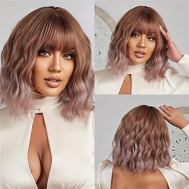 باروكات بوب أوبورن للنساء، شعر مستعار صناعي مموج ومجعد مع غرة للاستخدام اليومي، شعر مستعار لحفلات عيد الميلاد.