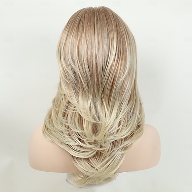 شعر مستعار أشقر للنساء طويل مموج من الدانتيل شعر مستعار أشقر صناعي الجزء الأوسط شعر مستعار أشقر متدرج للحفلات اليومية
