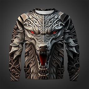 رجالي حيوان ذئب مطبوعات غرافيك بلوزات كنزة كنزة قف بجانب الطريق كم طويل سويت شيرت رقبة عالية مدورة كوول يوميا كلاسيكي طباعة ثلاثية الأبعاد مناسب للعطلات مناسب للخارج ملابس الشارع طباعة ربيع & الصيف