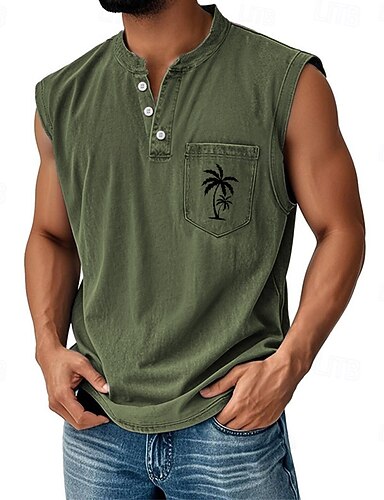 رجالي سترة الأعلى قميص داخلي قميص بلا اكمام بدون كم هينلي كل الفصول شجرة جوز الهند موضة مصمم جيب عطلة شارع مناسب للخارج أسود وردي بلاشيهغ أزرق بحري داكن تي شيرت للرجال