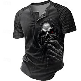 رجالي Halloween داكن تي شيرت كم قصير طباعة ثلاثية الأبعاد عتيق / معتق قوطي مناسب للحفلات شارع الصيف الربيع أسود رمادي طوق هينلي تي شيرت هنلي