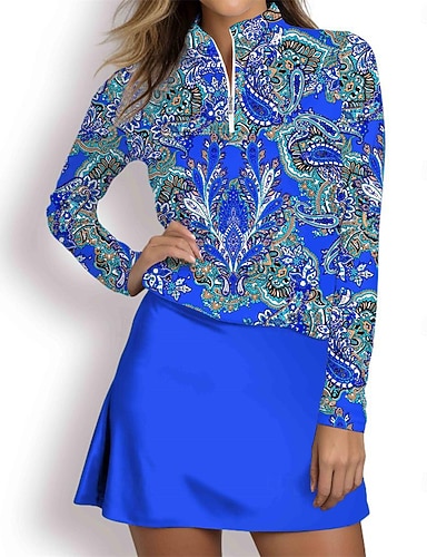 نسائي قميص بولو أزرق كم طويل قمم ورد ملابس الجولف للسيدات، ملابس ملابس