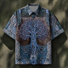 رجالي سلتكس شجرة الحياة قميص قميص صيفي زر حتى القميص كم قصير ريترو خمر مناسب للبس اليومي مناسب للعطلات الصيف الربيع طوي طباعة ثلاثية الأبعاد قميص بياقة جيب أمامي واحد أزرق أخضر أزرق بني أخضر