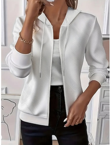 نسائي جاكيت كاجوال سترة هوديي مريح متنفس سحاب جيب كاجوال سهل عطلة شارع فضفاض مناسب للبس اليومي سحاب عادية مع قبعة عادي كم طويل ملابس خارجية أسود أبيض وردي بلاشيهغ الربيع الخريف