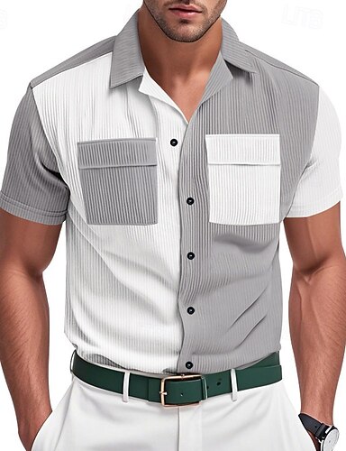 رجالي قميص قمصان العمل قميص غير رسمي زر حتى القميص قميص البضائع أسود أزرق كاكي خضار العسكري رمادي كم قصير سهل Lapel عطلة مناسب للعطلات جيب أمامي ملابس بوليستر موضة كاجوال مريح
