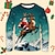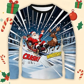 عيد الميلاد المجيد للصبيان 3D الرسم تي شيرت كنزة مطبوعة كم طويل الربيع الخريف موضة أساسي أطفال 4-12 سنة رقبة العمل الأماكن المفتوحة فضفاض مناسب للبس اليومي عادي