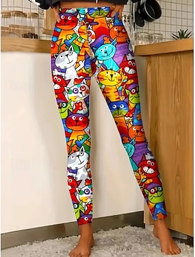 نسائي طماق بانغك نشيط العطلة Ankle-length خصر عالي الرسم حيوان قطة طباعة ثلاثية الأبعاد سريع جاف التنفس إمكانية ناعم قابل للبسط الأماكن المفتوحة المنزل فضفاض أسود أبيض التقزح اللوني رمادي الخريف ضيق