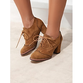 حذاء نسائي فيكتوري بني برباط وكعب متوسط - مثالي للارتداء غير الرسمي والأنشطة الخارجية والنزهات في عطلة نهاية الأسبوع