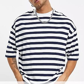 رجالي مخطط تي شيرت تي الأعلى كم قصير رقبة عالية مدورة الصيف مخطط مصمم أساسي الحديث المعاصر عطلة شارع مناسب للخارج أبيض تي شيرت للرجال