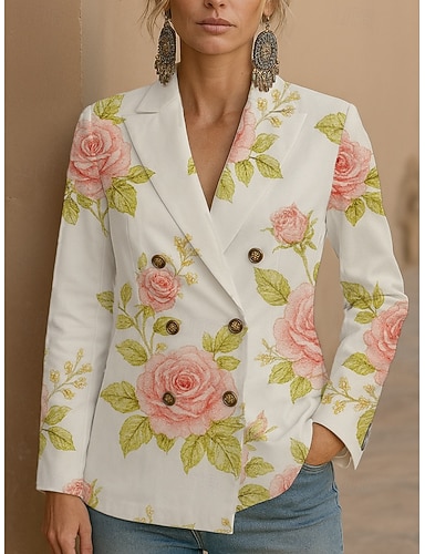 نسائي سترة ضد الهواء مريح Buttons أنيق عتيق موضة لطيف ورد فضفاض عادية شق الصدر علوي عادي كم طويل ملابس خارجية أبيض وردي بلاشيهغ أرجواني الربيع الخريف