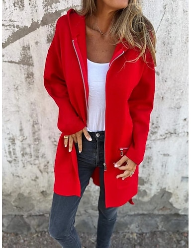 نسائي سترة هوديي مريح متنفس سحاب جيب موضة يوميا سهل الأماكن المفتوحة فضفاض مناسب للبس اليومي سحاب عادية مع قبعة عادي كم طويل ملابس خارجية أسود أحمر جمل الربيع الخريف