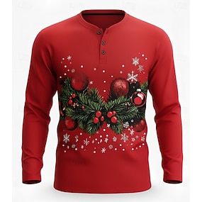 رجالي عيد الميلاد المجيد رقاقات الثلج قميص هينلي كم طويل موضة لطيف يوميا فضفاض مناسب للعطلات مناسب للخارج الشتاء ربيع & الصيف أحمر هينلي تي شيرت هنلي